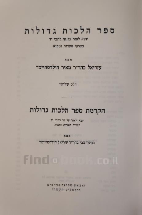ספר הלכות גדולות חלק שלישיעזריאל בהר"ר מאיר הילדסהיימר
