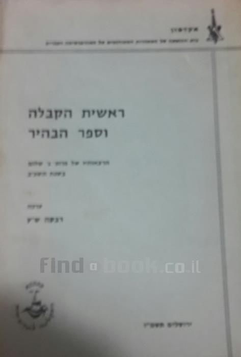 ראשית הקבלה וספר הבהיר הרצאותיו של פרופ' ג' שלום בשנת תשכ"ברבקה כץ