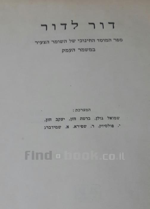 דור לדור ספר המוסד החינוכי של השומר הצעיר במשמר העמקשמואל גולן ברטה חזן יעקב חזן ח.פולסיוק ר.שפיראבא.שמידברג
