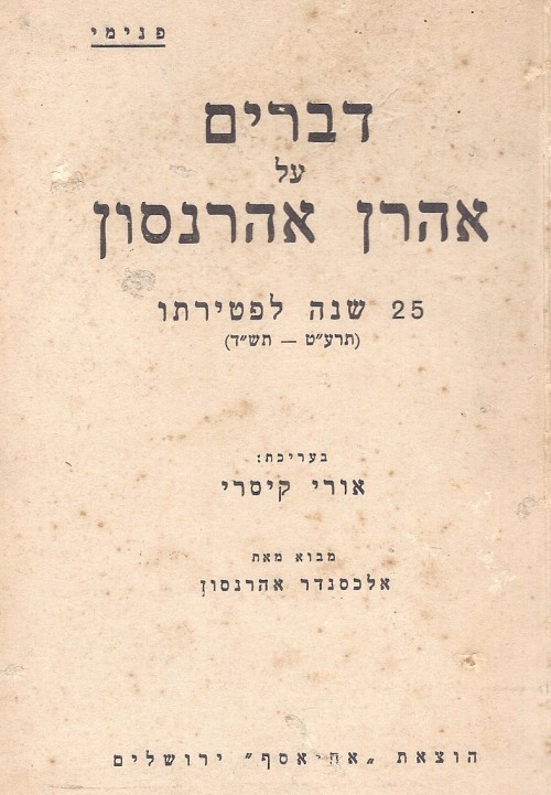 דברים על אהרן אהרנסון - 25 שנה לפטירתועריכה: אורי קיסרי