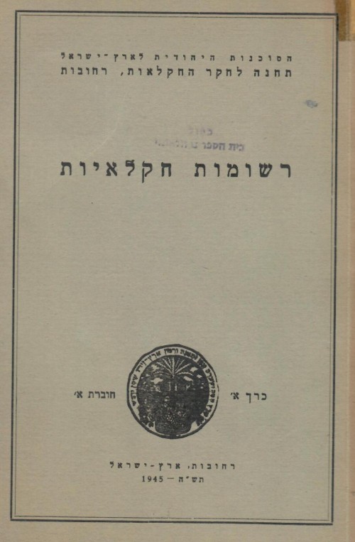 רשומות חקלאיות / כרך א', חוברת א'.תחנה לחקר החקלאות - רחובות