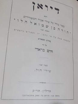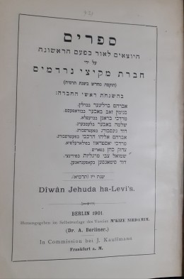 דיואן יהודה בן שמואל הלוי / שירי חול: ספר שני , הוצ' "מקיצי נרדמים" ברלין 1896.