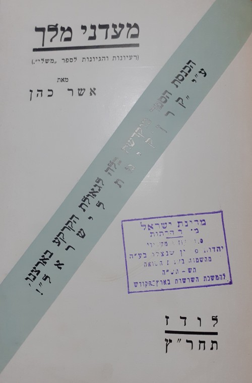מעדני מלך(רעיונות והגיונות לספר משלי)אשר כהן