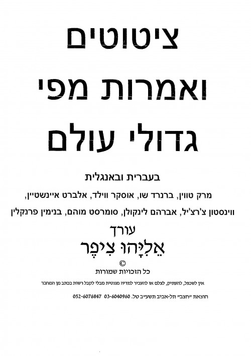 ציטוטים ואמרות בפי גדולי עולם (בעברית ובאנגלית)ציפר אליהו