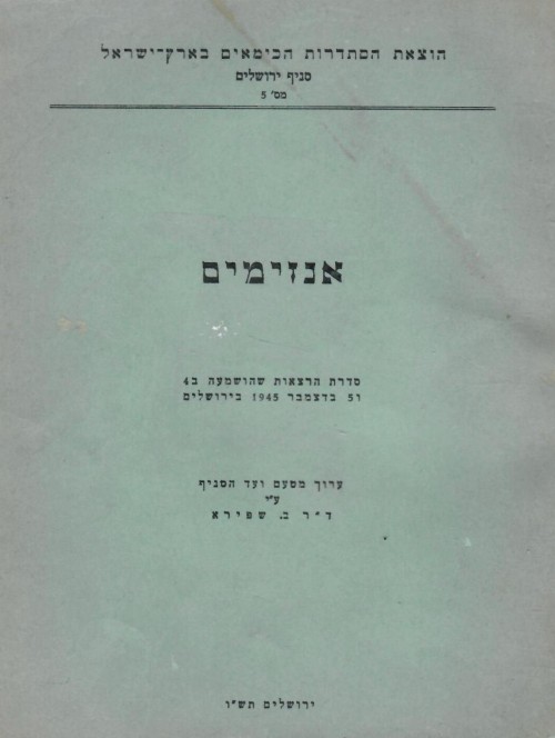 אנזימים - סדרת הרצאות / הסתדרות הכימאים - כנס 1945עורך: ב. שפירא
