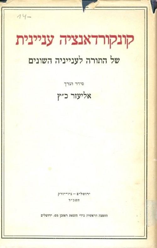 תאור תמונה: שער הספר {קונקורדאנציה עניינית}