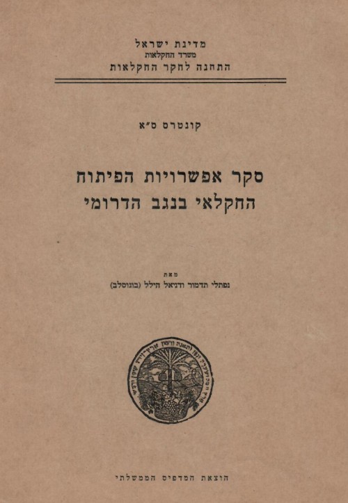 תאור תמונה: שער הספר {סקר אפשרויות הפיתוח החקלאי בנגב הדרומי (כולל מפה)}