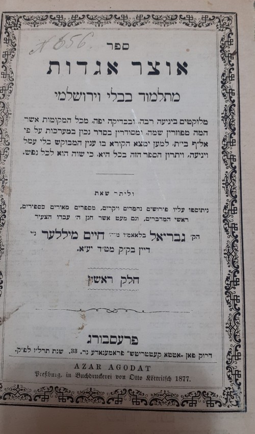 אוצר אגדות בתלמוד הבבלי הירושלמי כולל שני חלקיםגבריאל חיים מילר