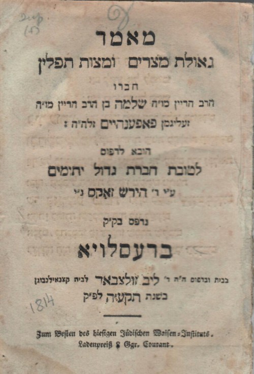 מאמר גאולת מצרים ומצות תפלין (ברסלויא 1814)שלמה פפנהיים