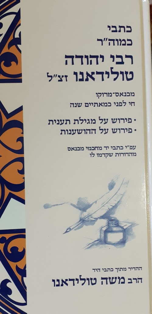 כתבי כמוה"ר רבי יהודה טולידאנו זצ"ל פירוש על מגילת תכנית פירוש על ההודעות עפ"י כתבי יד מיאמי מכנאס מהרב משה טולידאנו