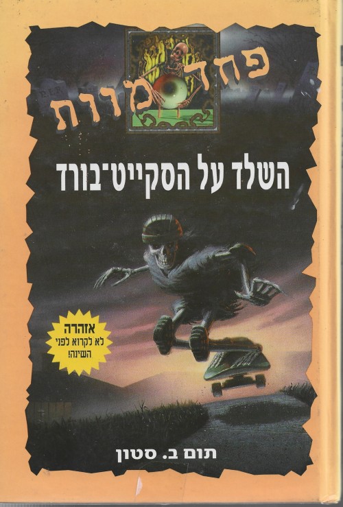 תאור תמונה: שער הספר {השלד על הסקייט-בורד}