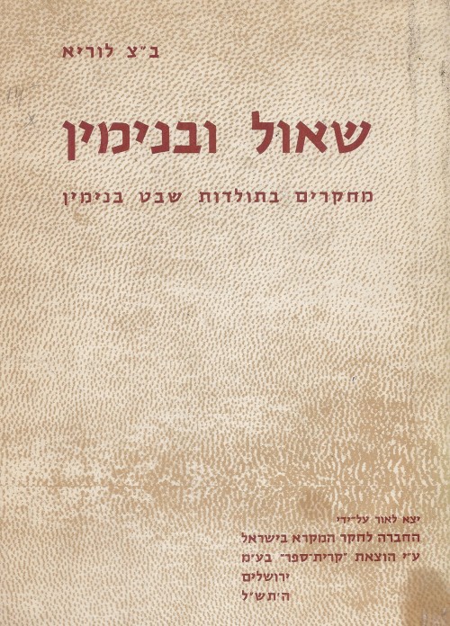 שאול ובנימין - מחקרים בתולדות שבט בנימין / כחדש! המחיר כולל משלוח.בן ציון לוריא