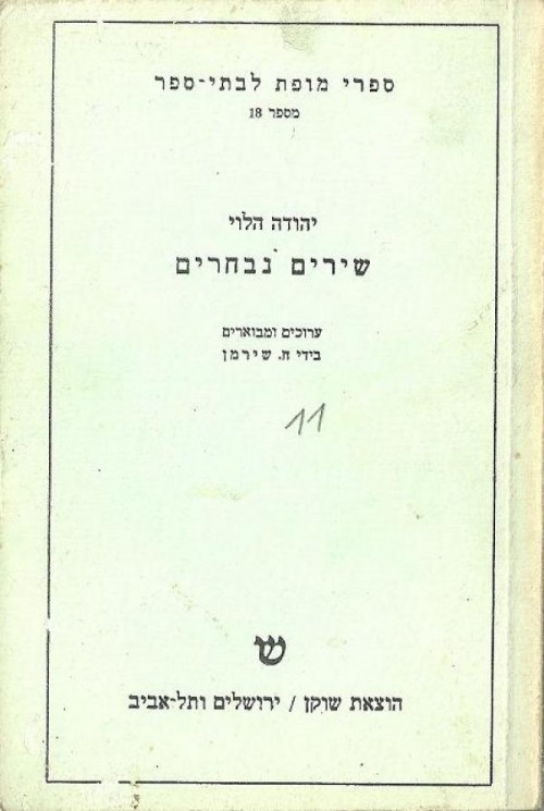 תאור תמונה: שער הספר {יהודה הלוי - שירים נבחרים}
