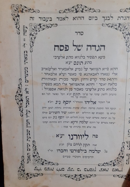 הגדה של פסח תונס נדפסה בליוורנו 1912 עברית-ערבית יהודית