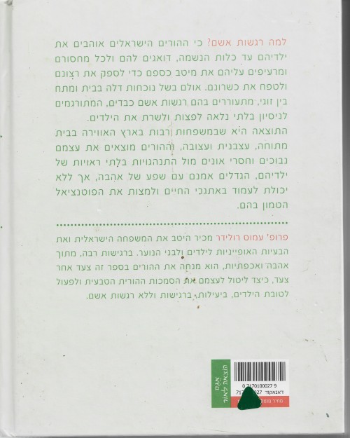 תאור תמונה: שער הספר {הורות ללא רגשות אשם / פרופ' עמוס רולידר}