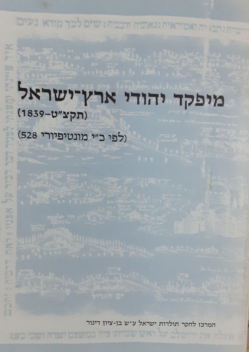 תאור תמונה: שער הספר {מיפקד יהודי ארץ ישראל ( תקצ"ט-1839) ( לפי כ"ח מונטיפיורי 528 )}