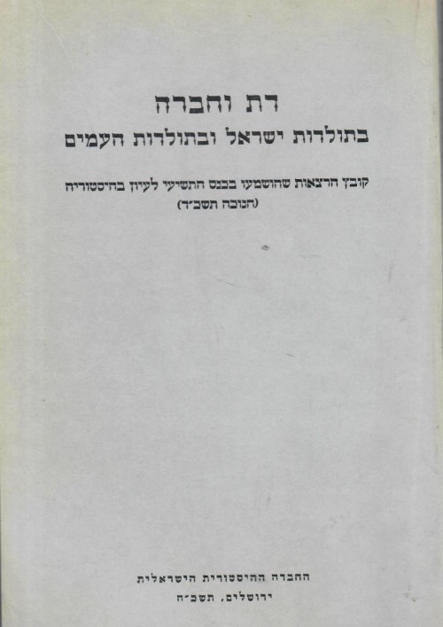 תאור תמונה: שער הספר {דת וחברה בתולדות ישראל ובתולדות העמים : קובץ הרצאות (כחדש, המחיר כולל משלוח)}