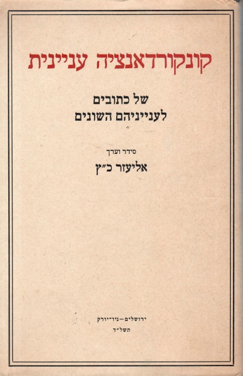 קונקורדאנציה עניינית של כתובים לענייניהם השונים (כחדש! המחיר כולל משלוח)אליעזר כ"ץ