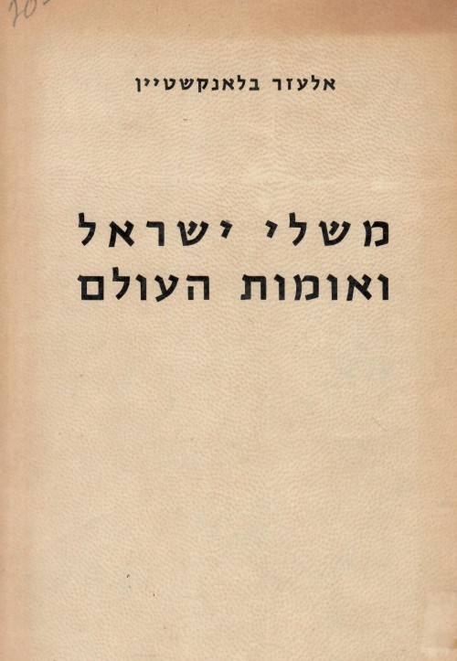 משלי ישראל ואומות העולם א' - התפתחותם לנוסחאותיהם וללשונותיהם. (כחדש, המחיר כולל משלוח)אלעזר בלאנקשטיין