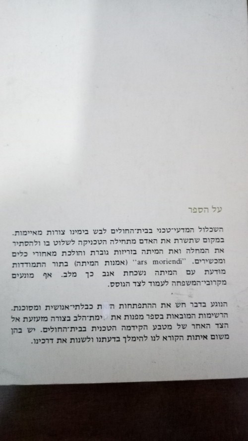 תאור תמונה: שער הספר {למות בבית חולים}
