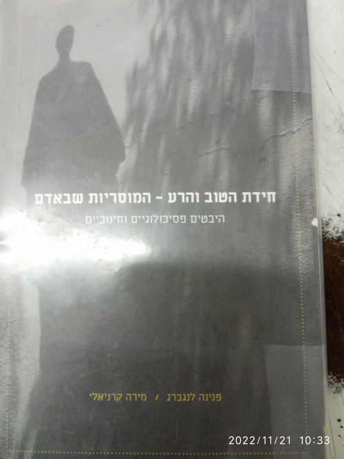 תאור תמונה: שער הספר {חידת הטוב והרע -המוסריות שהאדם}