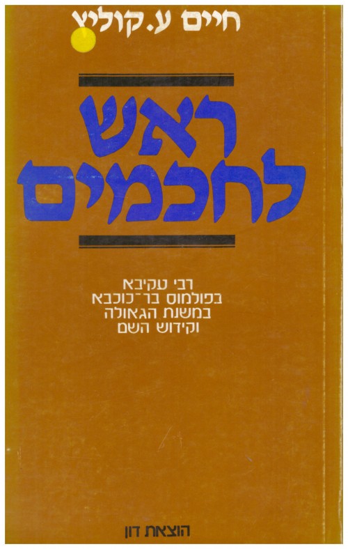 ראש לחכמים : רבי עקיבא בפולמוס בר-כוכבא במשנת הגאולה וקידוש השםחיים קוליץ