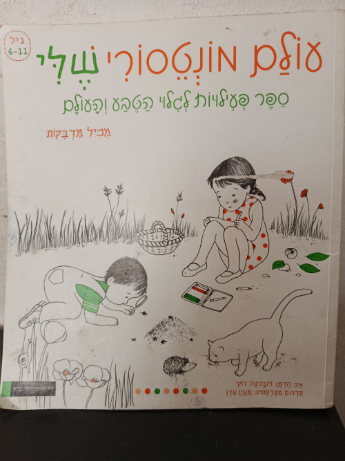 תאור תמונה: שער הספר {עולם מונטסורי שלי - ספר פעילויות לגלוי הטבע והעולם - מכיל מדבקות}
